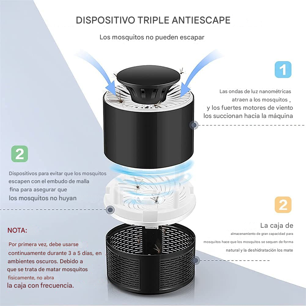 ✅ Tecnología UV inteligente: Emite luz ultravioleta que atrae insectos voladores de forma natural y eficaz.